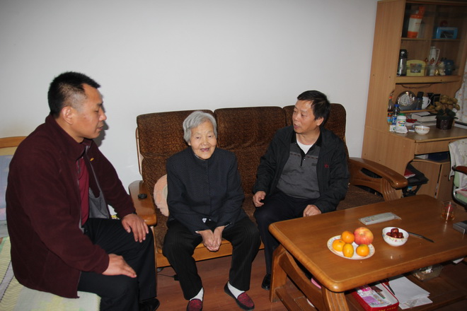 “今天您過節(jié)了,我們來看看您,也祝福您,希望您健康長壽?!标狘h委書記王戰(zhàn)社一進門就親切地握著劉明簡老人家的手說,并送上慰問品。老人高興地連聲說“謝謝”。在與老人及其親屬親切交談中,了解到老人身體健康,而且還經(jīng)常做家務(wù)、晨煉運動時,連連稱贊老人身體好,有福氣,說:“家庭和睦、兒孫孝順、心胸開闊,是老人健康長壽的重要原因?!?/span>