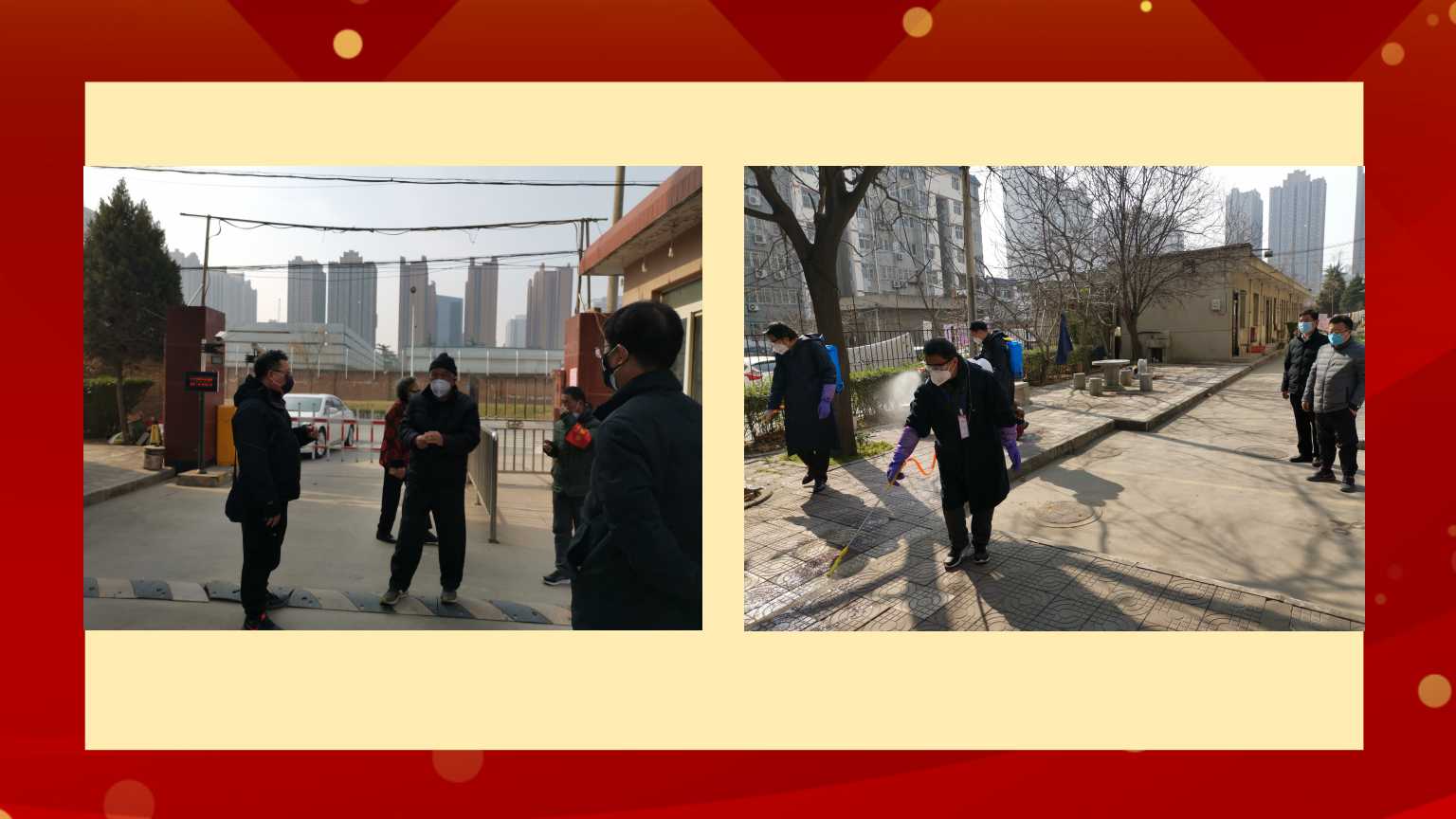 2月初,安環部積極響應公司疫情防控工作安排,將疫情防控要求張貼到每一棟樓,制定了嚴格門禁管理措施,堅持每日對公司院子進行消毒三次,對進出人員進行體溫測量。