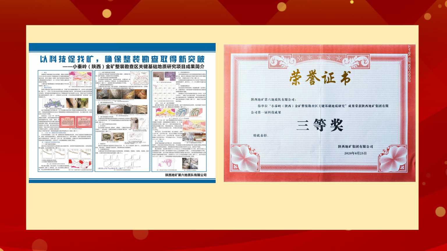 公司地質調查所申報的小秦嶺(陜西)金礦整裝勘查區關鍵基礎地質研究項目喜獲“科技成果三等獎”。